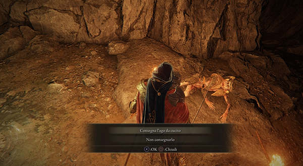 Per proseguire nella quest, dovrete spostarvi nella Caverna Costiera a ovest, parlare col povero Boc che giace malmenato di fianco al Luogo di Grazia e completare il semplice dungeon. Al termine della caverna troverete come boss due Capi Semi-Umani: abbatteteli per ottenere gli strumenti da cucito di Boc, in particolare il suo Ago, e riconsegnategli il tutto. Il vostro Sarto può dunque tornare all’opera!