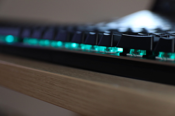 Partiamo dalla tastiera che si presenta, nella sua semplicità, con un classico e sempre elegante metallo spazzolato impermeabile color nero opaco. Presenta ben 105 tasti anti-ghosting con 8 Mb di memoria flash incorporata. Ogni tasto misura 16,8 millimetri con la possibilità di cambiare colorazione grazie ai 16,8 milioni di colori retroilluminati RGB. La tastiera è costruita con chiavi galleggianti, con interruttori Outemu Blu (Gaote switch). La facilità di utilizzo rende il tutto più piacevole, grazie alla porta USB 2.0 che, una volta collegata al computer, rende la tastiera utilizzabile senza dover installare alcun driver. Ciascun tasto è sostituibile con immensa facilità grazie al Keycap Puller (tirante a cappuccio) in dotazione nella scatola. Ovviamente, il Keycap puller può essere utilizzato anche per pulire i tasti dopo un lungo utilizzo. Le dimensioni contenute della tastiera (44,30×13,50×3,50 cm) permettono un posizionamento agevole sulla tua scrivania.
