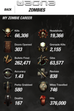 Pochi giorni fa, è stato rilasciato un aggiornamento per l’app di Call of Duty Elite per i dispositivi Apple. Questo aggiornamento permette di vedere le proprie statistiche sulla modalità Zombie di Call of Duty: Black Ops 2: uccisioni, morti,colpi in testa, porte aperte,ecc e anche le ultime vostre partite recenti con il risultato e l’arma più utilizzata.