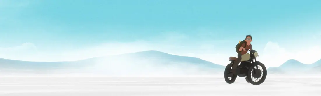 Un paesaggio desertico realizzato in computer grafica, come se fosse un dipinto minimalista pieno di colore. Un albero e un paracadutista dalle forme poco dettagliate. Una sensazione di sospensione, come se si approdasse nel cuore di un videogioco a basso budget. Ecco la prima immagine di Away, di cui si saprà ben poco in termini di antefatti e sviluppi. È la magia del cinema senza parole, molto diffusa nell’animazione e soprattutto nel cortometraggio. È in questo modo che si trasporta lo spettatore in un mondo simile al nostro, ma mai del tutto, i cui misteri non verranno mai chiariti, nemmeno in una conclusione enigmatica quanto il punto di partenza. Come il protagonista de La tartaruga rossa, nessuno sa da dove venga, chi sia, perché sia arrivato, dove si trovi né cosa stia facendo. Si limita a essere lì, desidera fuggire e così ha inizio il suo viaggio. Qui il percorso è più materiale che spirituale rispetto al film di Michael Dudok de Wit, ma le due dimensioni non sono mai davvero lontane e risuonano costantemente l’una nell’altra.