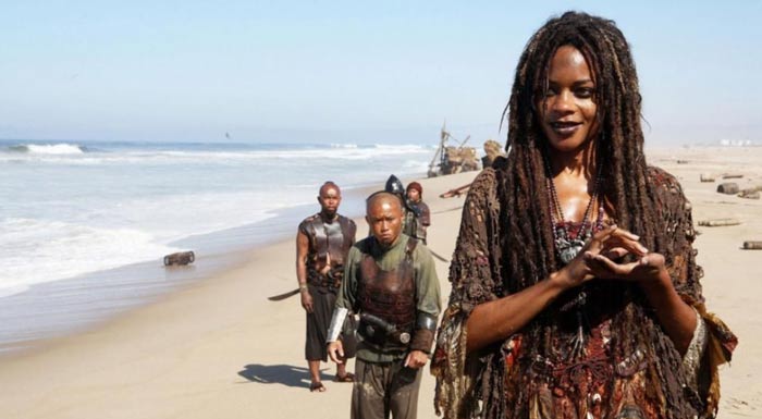 Immediatamente diciamo, “Bene, Sputafuoco Bill, non l’abbiamo mai incontrato in Pirati 1. Questa è un’opportunità. […] Sputafuoco Bill, dove lo mettiamo? Cosa facciamo con Sputafuoco Bill? Quindi, il padre di Will, Jack lo conosceva, okay, abbiamo la storia del padre con il pirata dentro”. I temi iniziano a maturare. E inizi a camminare in quella stanza ogni giorno e fai domande drammaturgiche, e poi vieni colpito da mille domande. I produttori entrano e chiedono: “Beh, di quanti giorni pensi di aver bisogno sull’Isola Quattro?”E poi Ted [Elliott] e Terry [Rossio] pensano rapidamente, “Quando scriviamo questa scena, sembrano due pagine e mezzo, tre,” e loro, “Sì, forse tre” e io ho detto, “Okay , quindi ho bisogno di un giorno e mezzo per il dialogo perché siamo sull’acqua.”