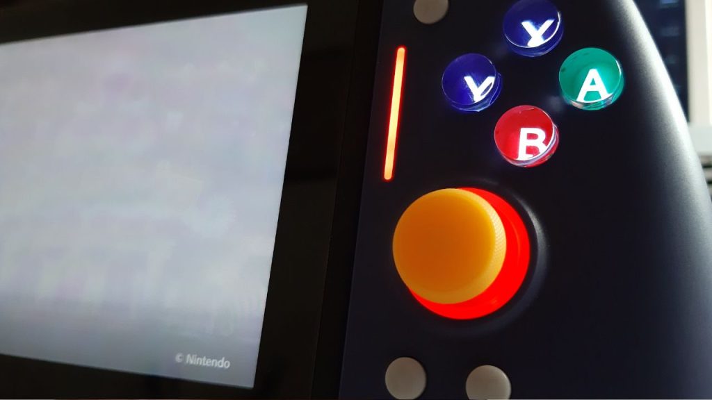 Intorno alle levette analogiche e quasi in corrispondenza con il collegamento al corpo centrale della console, sono presenti luci LED che cambiano colore aggiungendo un tocco di vivacità all’esperienza di gioco, e piacevolmente belle da vedere in notturna. È possibile impostare una modalità monocromatica premento T (pulsante extra presente nel joy-pad sinistro) e uno tra L3 e R3, cambiando poi tra rosso, giallo (il preferito, visto che richiama ulteriormente il GameCube), blu, verde, viola, arancione, bianco e luce; è però presente anche l’impostazione per un cambiamento ciclico della colorazione dei LED.