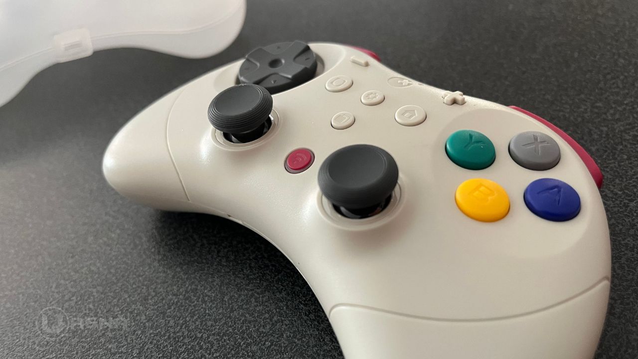 Al primo impatto, il GuliKit Elves 2 Pro colpisce per la sua forma insolita. È piccolo, leggero e piuttosto sottile, oltre che con colori abbastanza atipici – ma c’è un motivo: il controller è disponibile sia interamente nero, sia in colore grigio con pulsanti blu, gialli e verdi, rendendo così omaggio al mitico SEGA Saturn.