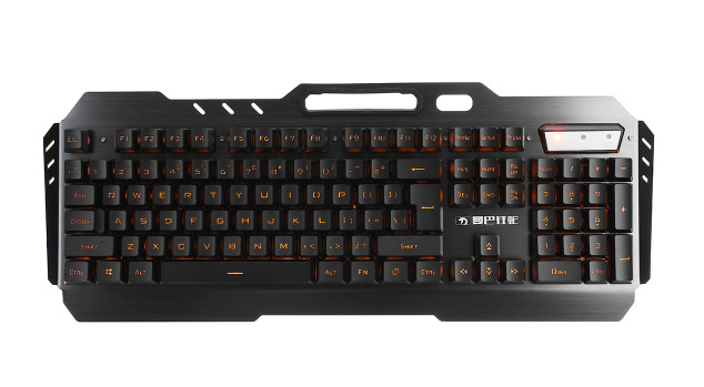 La tastiera USB a membrana, con cavo in tessuto per impedire che si attorcigli, è retroilluminata di giallo/arancione, e presenta un layout non italiano ma americano, riferito in particolare ai tasti dei simboli speciali. Nella sua interezza, però, parliamo pur sempre di una tastiera con configurazione QWERTY. Pur non avendo grandi dimensioni, essendo inoltre sprovvista di poggiapolsi, la periferica è anche dotata di tastierino numerico a destra, il che la rende adatta a più scopi. Da segnalare inoltre, ma in questo caso si tratta di una funzionalità che non a tutti interessa, la presenza di uno scomparto nella parte superiore della tastiera che serve a inserire lo smartphone, per averlo a portata di mano in qualsiasi momento o per sfruttarlo per guardare ad esempio un video su YouTube nel mentre che utilizzare il computer per altro.