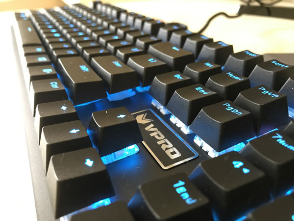 All’interno della confezione troviamo la tastiera meccanica USB, il manuale d’istruzioni cartaceo e un accessorio in plastica rosso che facilita la rimozione dei tasti dalla keyboard qualora ne avessimo bisogno. Il prodotto risulta robusto al tatto, compatto e senza troppi fronzoli. Le sue dimensioni sono compatte e non è presente il poggiapolsi. E’ compatibile con ogni sistema Windows, per cui è sufficiente collegare la presa USB al computer per poterla utilizzare sin da subito. Il cavetto di collegamento è in tessuto mentre la presa USB è placcata in oro. La tastiera è retroilluminata e al primo collegamento apparirà un suggestivo effetto grafico che per qualche secondo disegnerà la lettera “V” sulla parte sinistra della keyboard, per poi svanire e lasciare il posto ad un’illuminazione uniforme azzurro acqua.