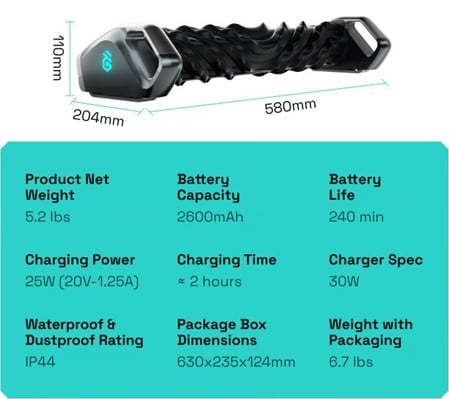 RheoFit A1 si distingue per l’utilizzo di un’applicazione mobile dedicata che consente di scegliere l’intensità e le modalità di massaggio in base alle esigenze individuali, che implementa l’Intelligenza Artificiale per creare programmi su misura. Con un solo pulsante e una durata della batteria che garantisce fino a 240 minuti di utilizzo continuo, il dispositivo risulta estremamente funzionale e facile da usare. Il suo design ergonomico e il suo peso limitato, meno di 2,5 kg, lo rendono facile e comodo da trasportare e ideale per un utilizzo quotidiano, sia a casa che in movimento.