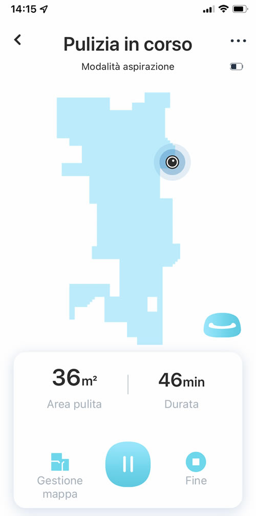 Dopo aver completato la procedura e aver caricato correttamente la batteria, il robot aspirapolvere è pronto ad entrare in funzione. In pochi minuti è già possibile avviare il robot ed iniziare con la prima pulizia di casa. Durante le prime pulizie il robot ha bisogno di scansionare l’area dell’appartamento, e solo a quel punto sarà possibile regolare la mappatura nell’app Yeedi. Con l’app si può successivamente scegliere una stanza specifica da pulire e impostare un programma per la pulizia. In ogni stanza è addirittura possibile impostare dei confini virtuali per indicare al robot dove pulire e quando, magari selezionando solo alcune aree specifiche, infatti la mappa iniziale creata da Yeedi è modificabile a piacere dall’utente.