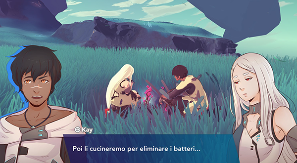 Se il gameplay risulta divertente e intrattenente nella sua routinaria semplicità, il punto forte del titolo di The Game Bakers è proprio l’interazione tra i protagonisti. Seppur in una galassia sconosciuta e diversissima dalla nostra, il loro rapporto è tenero e realistico. Impossibile non farsi spuntare un sorrisetto sulle labbra nell’ascoltarli scherzare mentre cucinano o mentre osservano il tramonto su una spiaggia segreta, scoperta per caso. Il loro amore è fatto di un’intesa dolce e passionale, che si manifesta anche in battute “piccanti” assolutamente credibili.