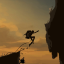 Corri e salta nel vuoto mentre Aava è assicurata a una corda