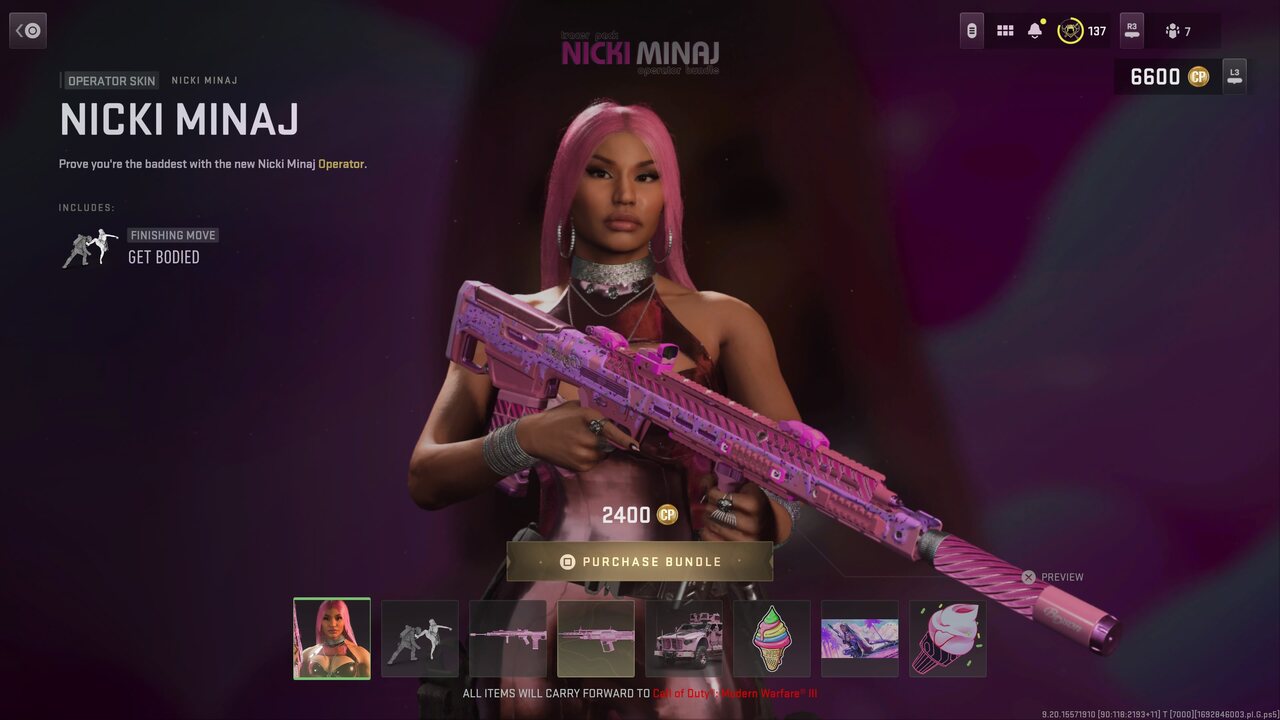 Il bundle operatore Nicki Minaj è ora disponibile su Call of Duty. In caso di acquisto, la skin e i contenuti saranno accessibili anche sul prossimo Modern Warfare 3.