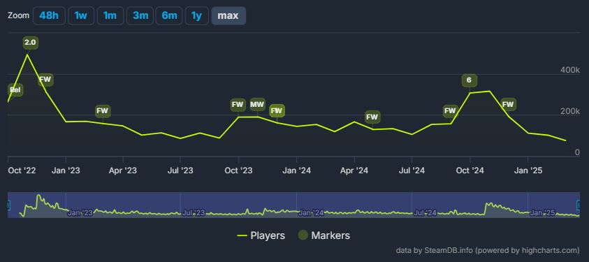 Come spesso accade per questi giochi a cadenza annuale, nei mesi successivi i numeri sono naturalmente diminuiti, con una lieve risalita nell’ottobre 2023 in occasione dell’uscita di Modern Warfare 3 che riportò il numero di utenti intorno ai 190 mila simultanei. Con l’uscita di Black Ops 6, avvenuta lo scorso autunno, i numeri di HQ sono stati molto più positivi: tra ottobre e novembre 2024, il picco massimo di utenti simultanei su Call of Duty fu di 315 mila, rendendo Activision estremamente speranzosa.