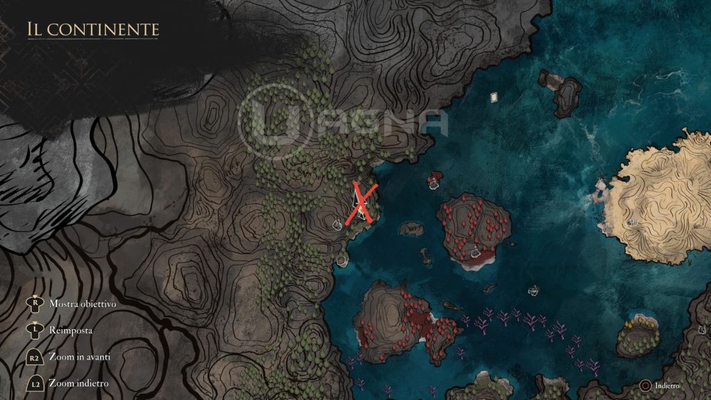 5. Su una fetta di spiaggia a nord della Grotta Costiera (è prima dei nemici, non dovrete batterli).