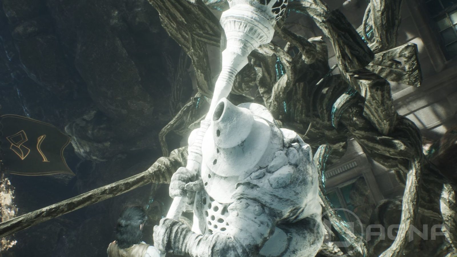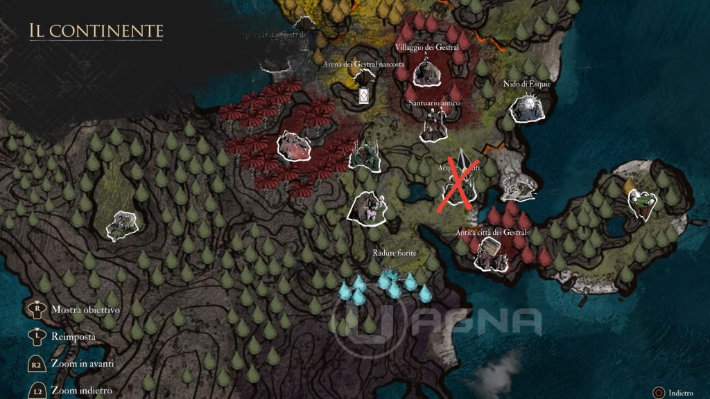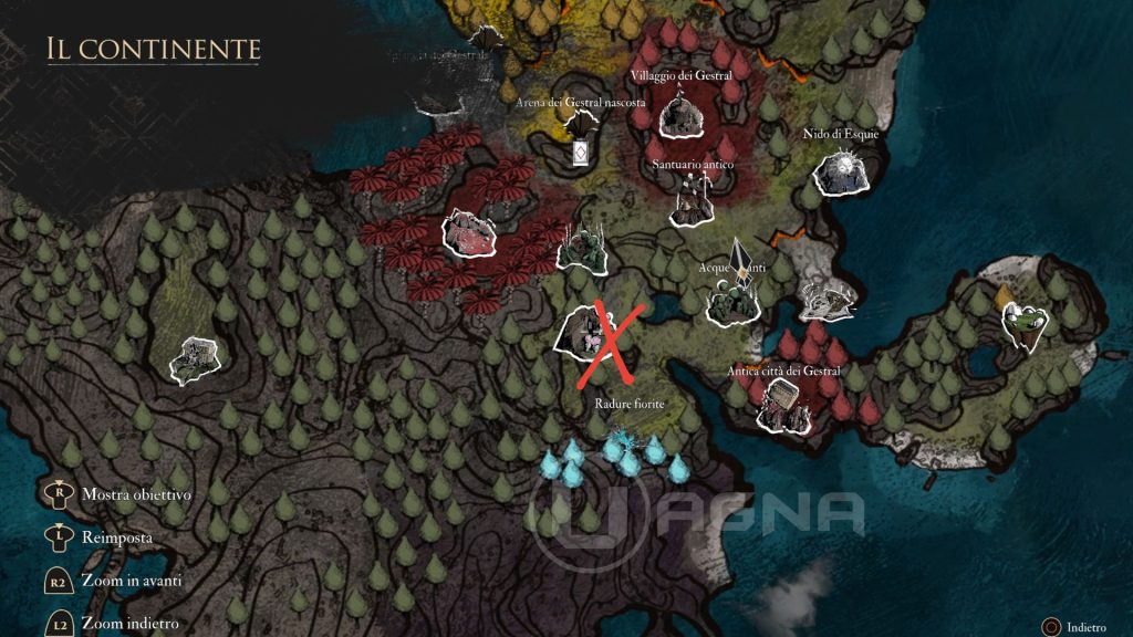 1. Radure Fiorite > Bandiera “Accampamento abbandonato degli esploratori”. Troverete un Nevron che è in cerca della sua perduta luce. Esplorando i dintorni, troverete della resina (rompete i barili di legno per trovarla). Consegnategliela e poi mirate alla sua enorme torcia per accenderla con un colpo ben assestato.