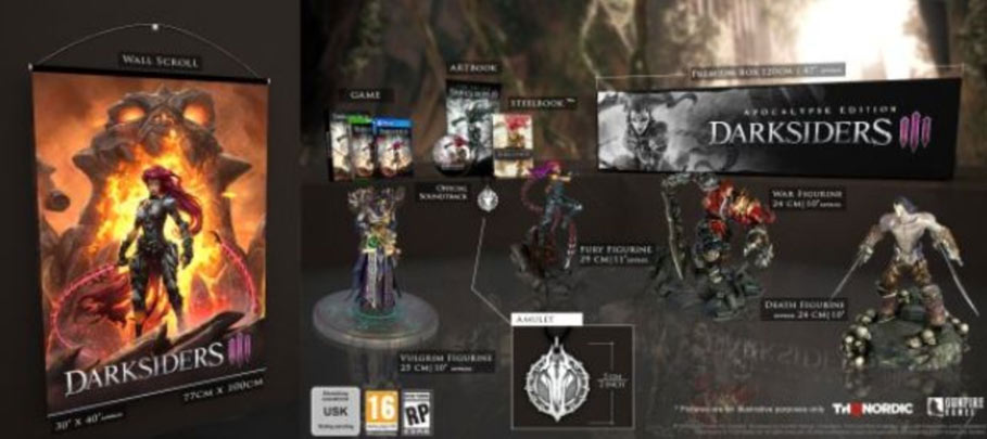 Per i fan sfegatati della serie dal portafoglio gonfio, sarà disponibile l’Apocalypse Edition da 399,99 dollari. Quest’ultima avrà al suo interno uan copia del giocoil gioco, una scatola premium, un poster da muro da 100×77 cm, un amuleto con collana e quattro statuette: Furia, Guerra, Morte e Vulgrim (tutte 25cm di altezza).