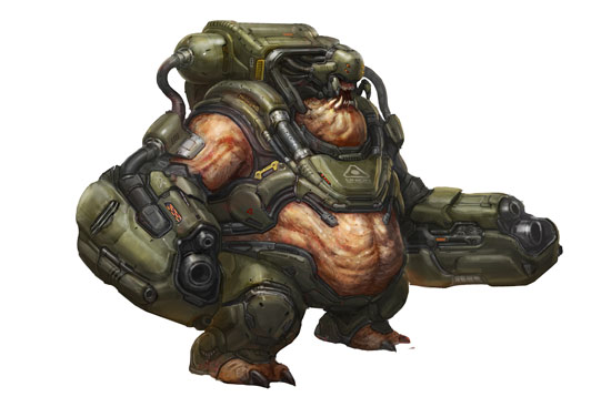Il mio primo compito del progetto è stata il Cacodemon progettato da Hugo Martin. Il ‘Caco’ è un demone molto iconico quindi è stato importante mantenere il suo “fascino” originale, ma allo stesso tempo evocare uno sguardo feroce moderno. Originariamente dei tentacoli fluivano dalla sua schiena, ma abbiamo optato per le classiche corna al fine di creare una silhouette più aggressiva – dice Denzil O’Neill.