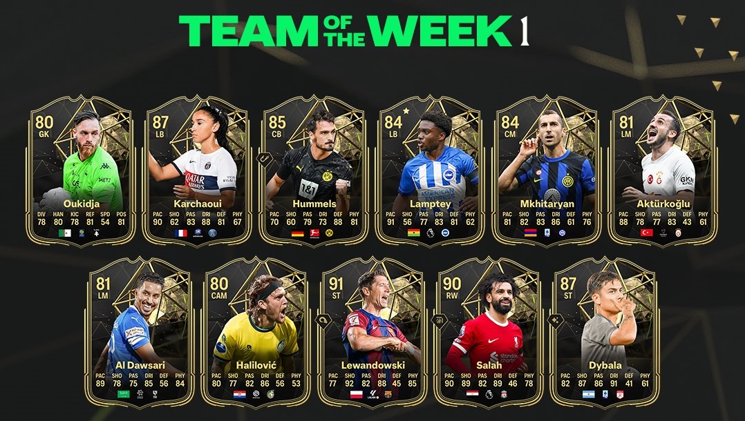 Team of the Week 1, the first TOTW available in Ultimate Team during #FC24 Early Access, has arrived. pic.twitter.com/Q1QiCjEsHa