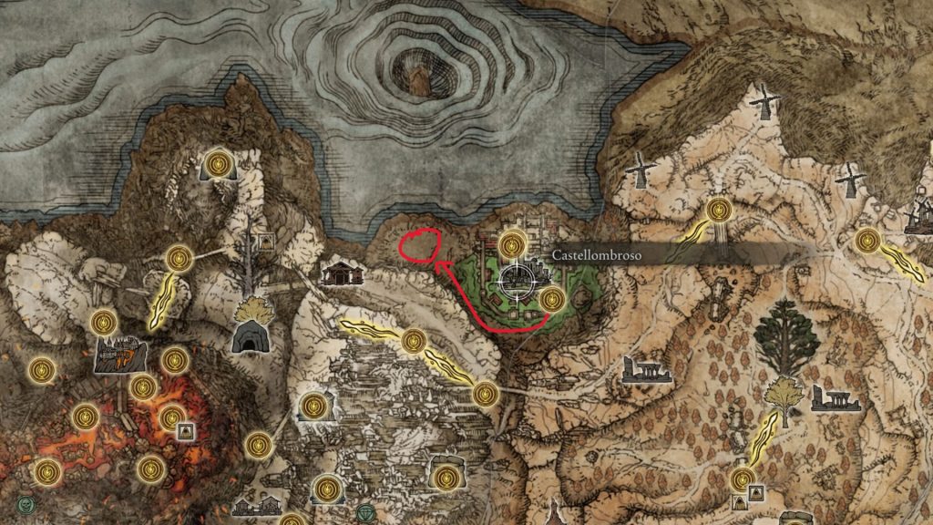 Quest’arma si trova sempre nel gioco base, vicino a Castellombroso (non vi serve entrare nella fortezza, aggiratela fino a trovare il luogo indicato qui sotto). Verrete invasi da Maleigh Marais, Signore di Castellombroso. Uccidetelo per ottenere la bellissima arma.