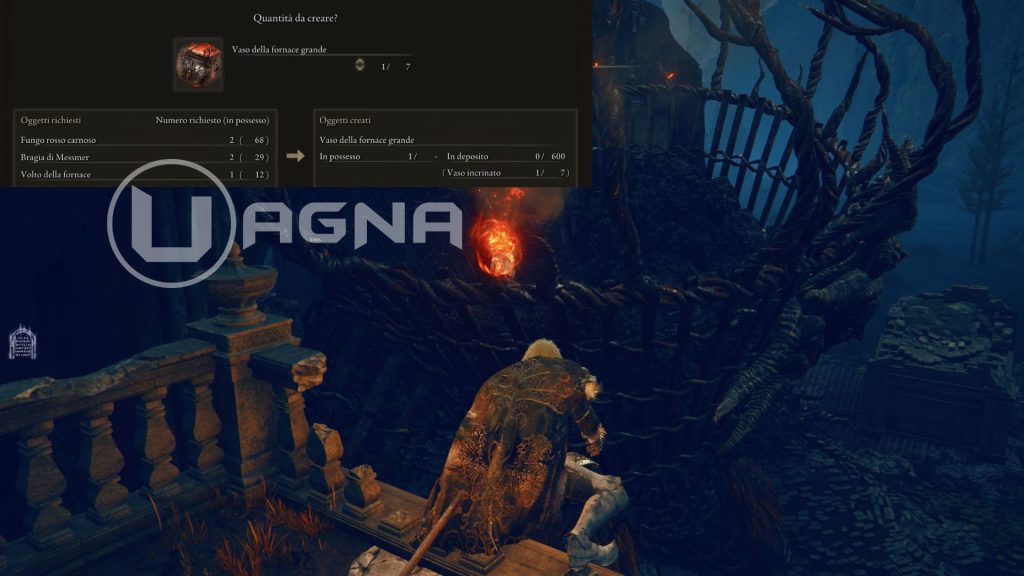 Può sembrare controproducente, ma ci serve accenderlo. Craftate quindi un Vaso della fornace grande e utilizzatelo in questo punto, così da lanciarlo e accendere il braciere del Golem!