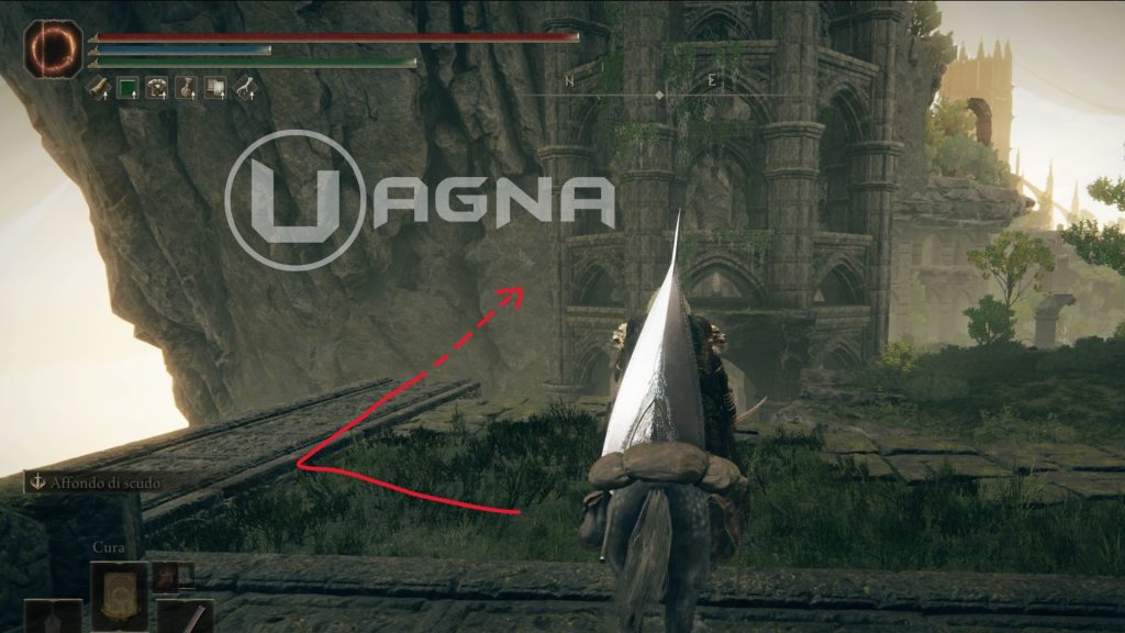 Per farlo, dovremo raggiungere le Antiche Rovine di Rauh ovest, il Luogo di Grazia nella parte nord ovest della mappa di Shadow of the Erdtree. Ora dovremo esplorare un pochino (potete correre in groppa a Torrent) fino a raggiungere un ponte invisibile.