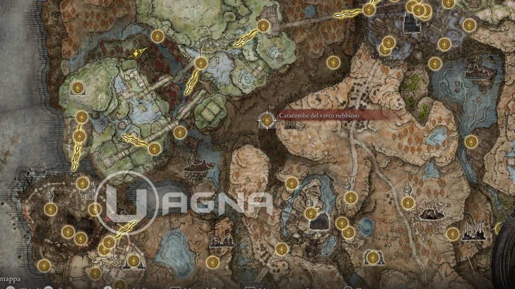Partendo dal Luogo di Grazia Fronte del Castello, dovremo giungere alle Catacombe del varco nebbioso, un dungeon piuttosto particolare. Preparatevi a esplorare un bel po’ per arrivare all’altare segreto che vi darà la Spada dell’Oscurità.