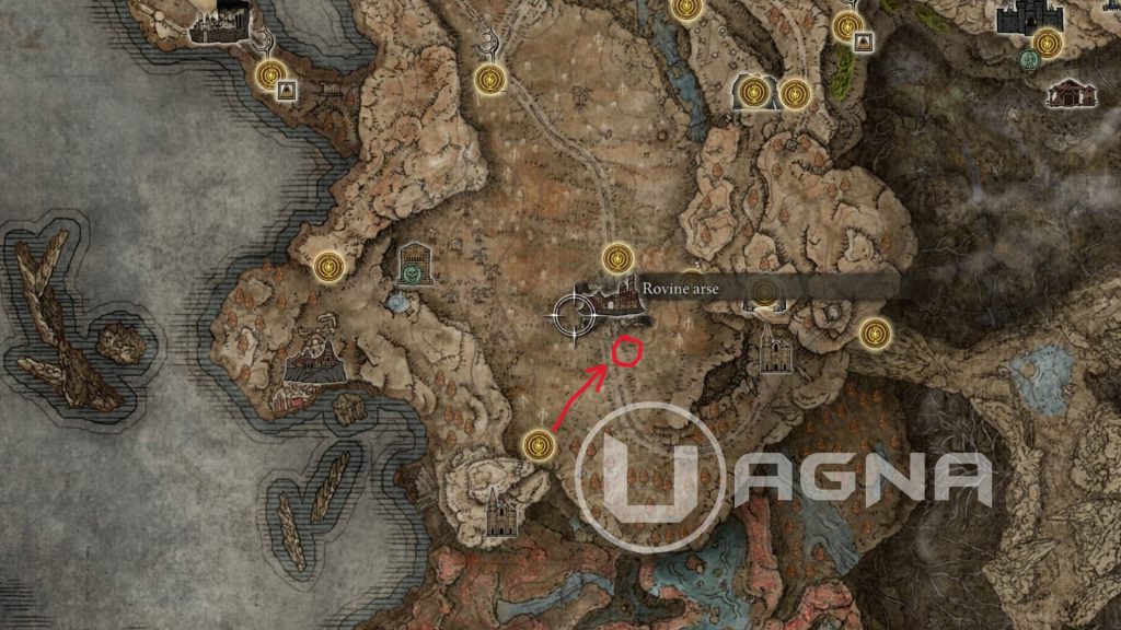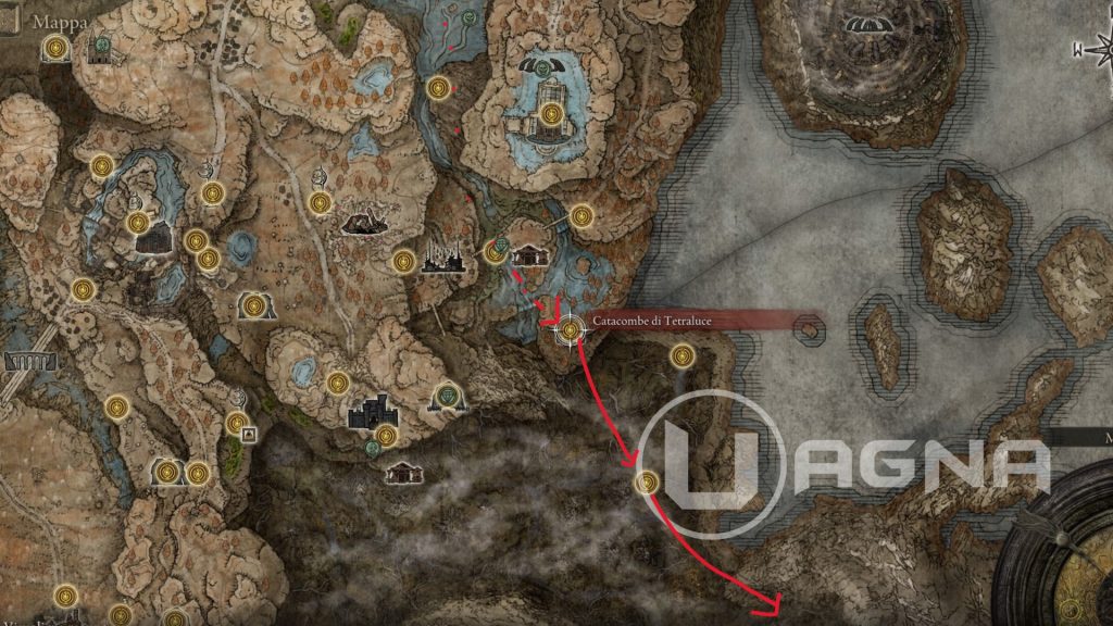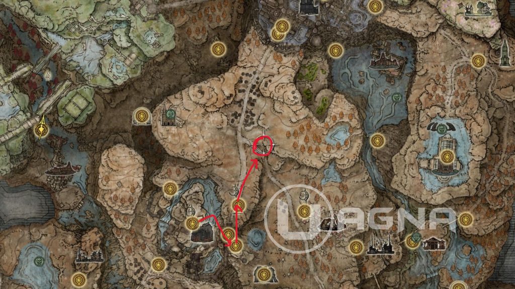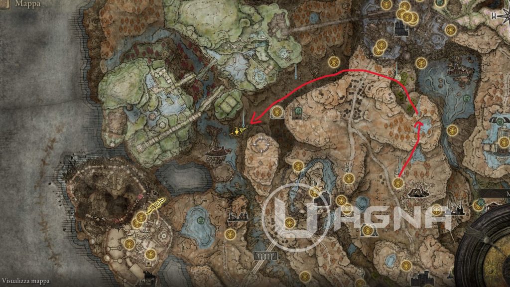 A nord est, dovrete raggiungere Rellana, cavaliera delle lune gemelle, il boss del Castello di Ensis. Usciti dal Castello oltre l’arena dello scontro una volta vinta la battaglia, troverete la mappa sul sentiero principale che porta a nord.
