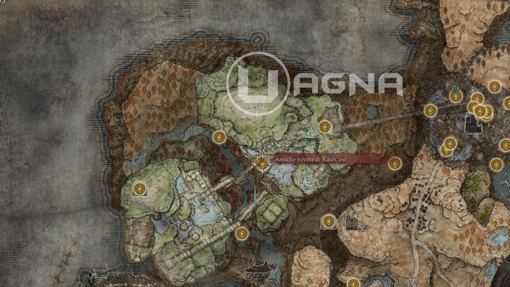 Rifatevi a questa guida per capire come trovare tutti i Frammenti di mappa in Shadow of the Erdtree. Come vedete qui sotto, la zona nord ovest delle Terre d’Ombra è caratterizzata dalle Rovine di Rauh, un’ampia area che vi porterà alla Chiesa del Bocciolo, un luogo chiave per la storia principale del DLC. Necessariamente quindi arriverete al Luogo di Grazia Antiche Rovine di Rauh Est, dopo esservi avventurati in una sorta di gigantesco mausoleo scavato nella montagna ed esserne usciti dall’altra parte (attenti al Cavaliere del Crogiolo che vi aspetta su un masso, Devonia. Evitatelo e correte alla Grazia poco oltre questo nemico, se non vi sentite pronti).