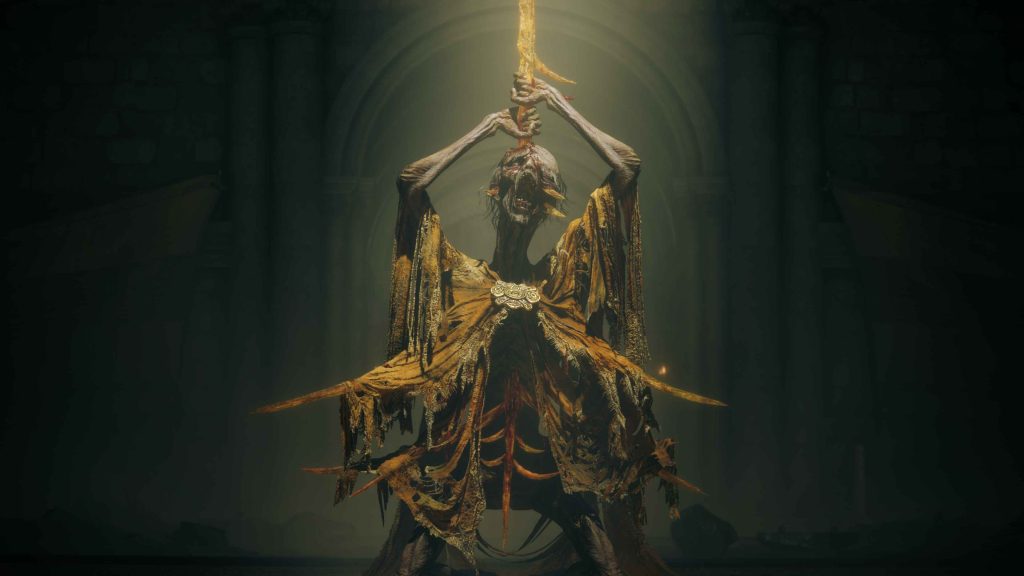 Dietro Mohg giace il corpo di Miquella, rapito e racchiuso in una sorta di uovo dal quale spunta solo il suo braccio avvizzito. Che per entrare nella “Terra d’Ombra” sia necessario interagire proprio con il suo braccio, così da essere trasportati in una nuova dimensione?