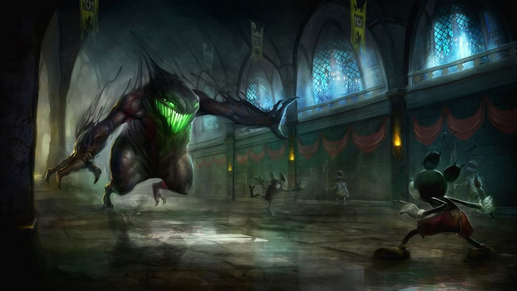 Il limite di Disney, appunto, si raggiunse in questa fase di creazione del concept. Varie immagini e proposte da parte di Junction Point vennero abbandonate in favore di uno stile sempre dark ma non eccessivamente cupo, forse privandolo di certe tematiche e dialoghi un po’ troppo oltre la linea di demarcazione che la compagnia prevedeva per una produzione sul buon Topolino.