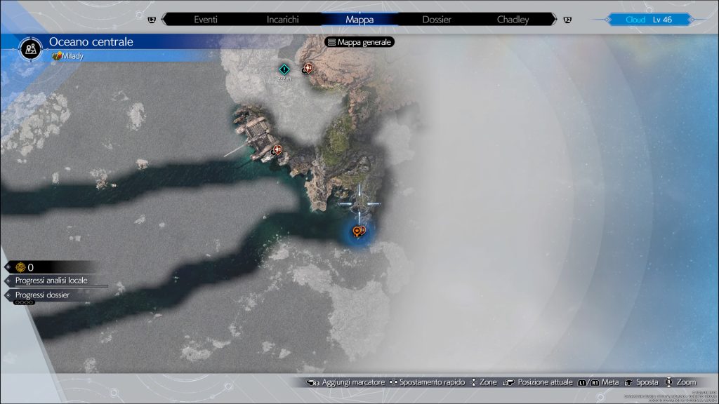 Navigando con la TinyBronco (parlate con Cid in un porto per partire) non potremo attraccare dove vogliamo, ma solo in delle aree prestabilite, segnate con dei cerchi rossi sull’acqua. Dovremo posizionarci sopra i cerchi con l’imbarcazione e tenere premuto triangolo per attraccare.