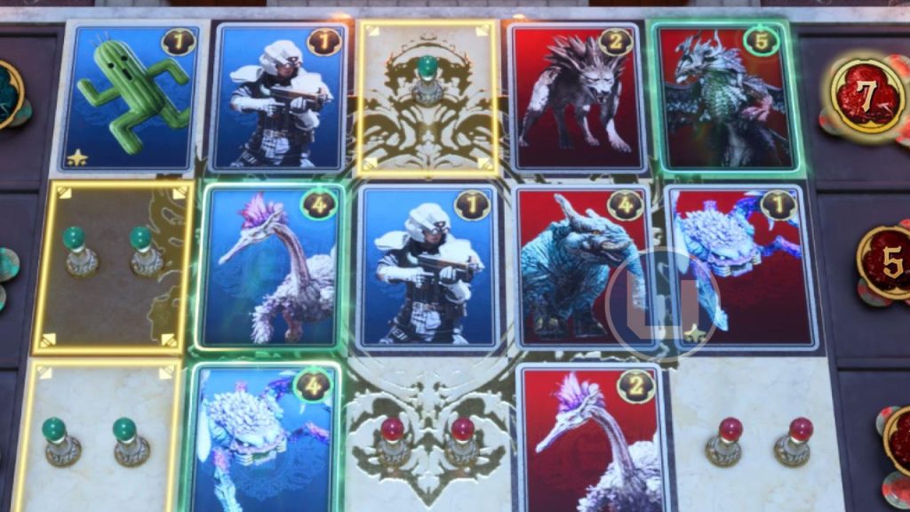 Il primo va posizionato in C2, in modo da depotenziare di 4 la carta avversaria che si trova in A4 – in realtà, la distruggerete con questa mossa. Ora portate Moguri Cantastorie in A1, perché così facendo potenzierete ben due carte, quelle in B2 e C2, aumentando il vostro potere. Il tocco finale per vincere la partita è Lupo di Kalm in C1, che porterà a 11 il vostro punteggio totale contro i 6 dell’avversario, che vince solo nel primo campo.