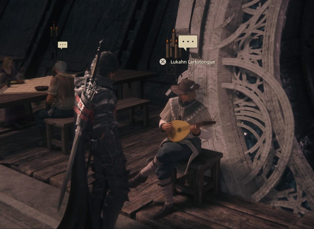Questo riferimanto a Final Fantasy IV si coglie più che altro nella versione inglese di Final Fantasy 16: presso il Rifugio, l’hub di gioco in cui Clive riunisce i suoi compagni, troviamo fin dalle prime ore un bardo chiamato in italiano Lukahn Larkstongue. In inglese invece il personaggio è indicato come “Spoony Bard”, un rimando a una famosa battuta presente in Final Fantasy IV in cui Tellah si scaglia contro un altro personaggio, Edward, che in quel momento è travestito proprio da bardo cantastorie. Tellah gli grida un iroso “Spoony Bard!”