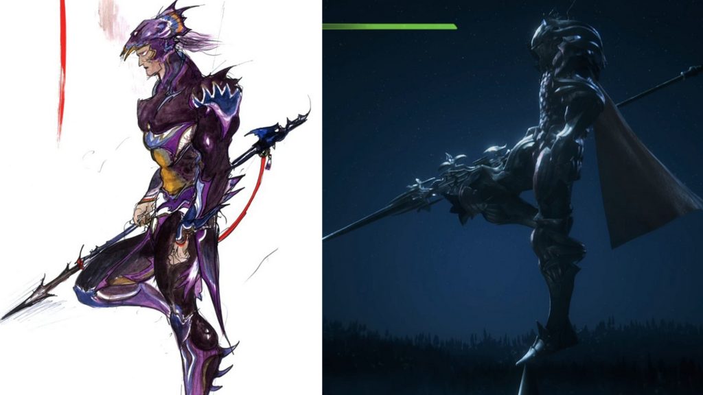 Sempre durante le prime fasi di Final Fantasy 16 (potete giocare questa parte già nella demo), ci ritroveremo a dover affrontare l’assedio del castello di Rosalith, un punto cruciale nella storia che cambierà per sempre la vita di Clive, Joshua e degli altri protagonisti. Lo scontro con il Dragone imperiale che avviene in questa sezione inizia in modo a dir poco iconico: la sua posa mentre si staglia nel cielo, davanti a una perfetta luna piena, rimanda all’artwork di Yoshitaka Amano che rappresenta Kain di Final Fantasy IV, nonché alla posa di Estinien Varlineau di Final Fantasy XIV. Il doppiatore di questo nemico in Final Fantasy 16 è lo stesso di Estinien: un tocco che fa subito pensare al producer Naoki Yoshida, un amante del quarto capitolo nonché director di Final Fantasy XIV.