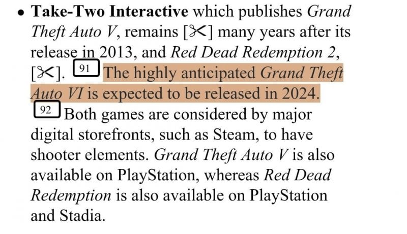 Tra i vari documenti pubblicati da Microsoft per parlare con le agenzie antitrust, emerge un’interessante informazione sull’attesissimo GTA 6, oggetto dei famosi leak di settembre.