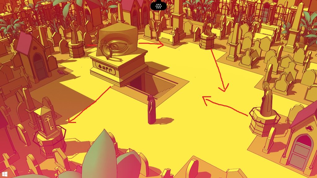 Tra una traduzione e l’altra ci imbatteremo in diversi puzzle ed enigmi da risolvere, così come in qualche minigioco. In questa guida vi spieghiamo come comprendere e risolvere l’enigma del cimitero: al secondo piano della Torre infatti, vi imbatterete ben presto in un cimitero ricco di statue, alcune di queste possono essere ruotate. Per aprire la botola che vi porterà al livello successivo è necessario scoprire la corretta posizione delle statue e sistemarle nel modo giusto. Vi consigliamo di tornare qui quando avrete completato la traduzione del taccuino ed esplorato per bene il resto del livello, in quanto si tratta dell’ultima cosa da fare qui.
