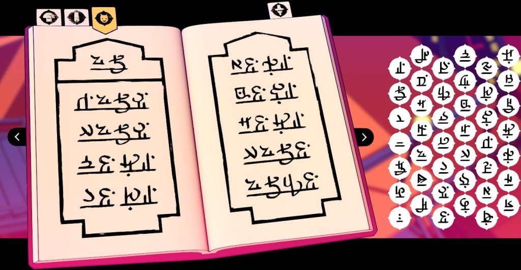Tra una traduzione e l’altra ci imbatteremo in diversi puzzle ed enigmi da risolvere, così come in qualche minigioco. In questa guida vi spieghiamo come comprendere e risolvere l’enigma del labirinto: per passare dal terzo al quarto livello infatti, dovrete per ultima cosa attraversare una serie di stanze nella penombra (il glifo all’ingresso del labirinto significa proprio “salire”).