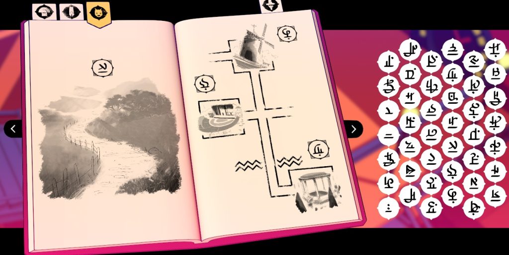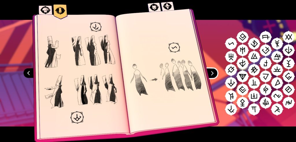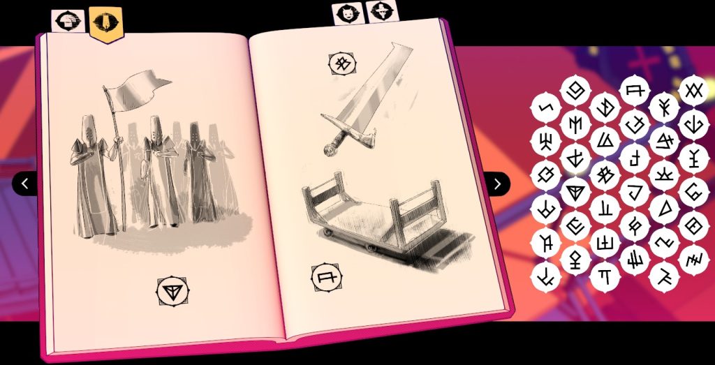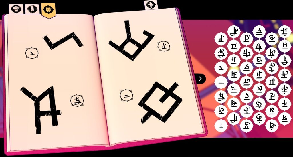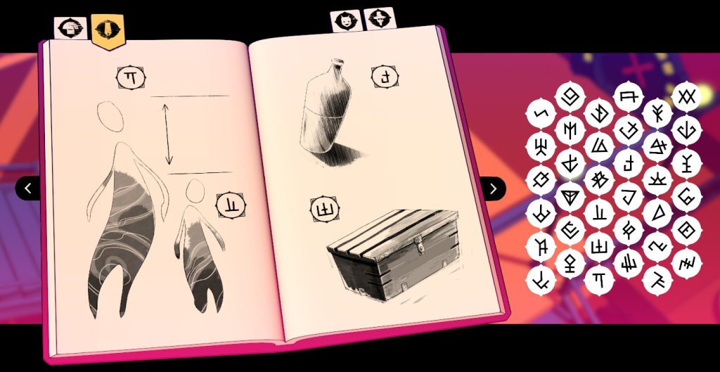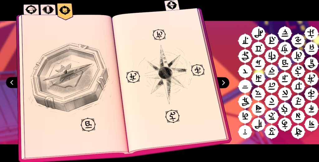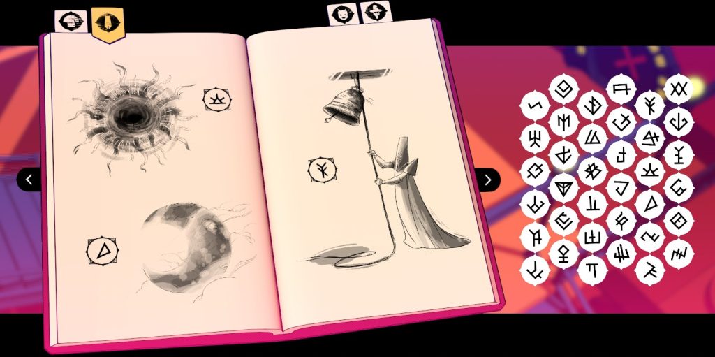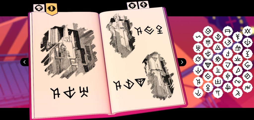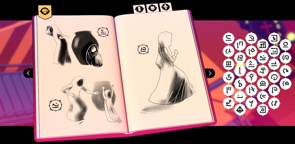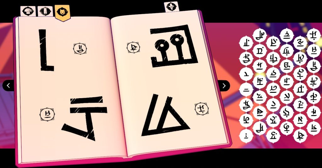 In questo caso i disegni vi serviranno a poco, in quanto per far comparire le pagine del taccuino dovrete prima comprendere la lingua degli Anacoreti attraverso la risoluzione di alcuni puzzle. Vi lasciamo qui la guida completa così che possiate tradurre rapidamente anche quest’ultimo idioma.