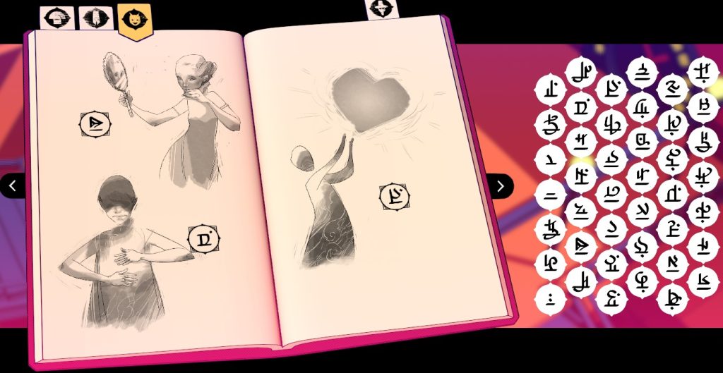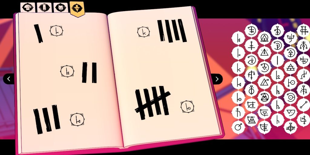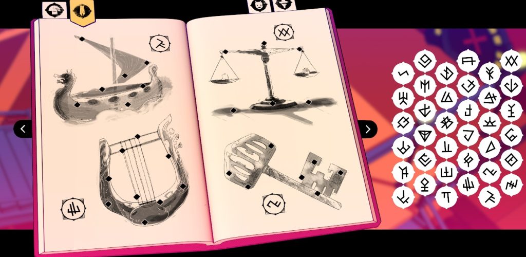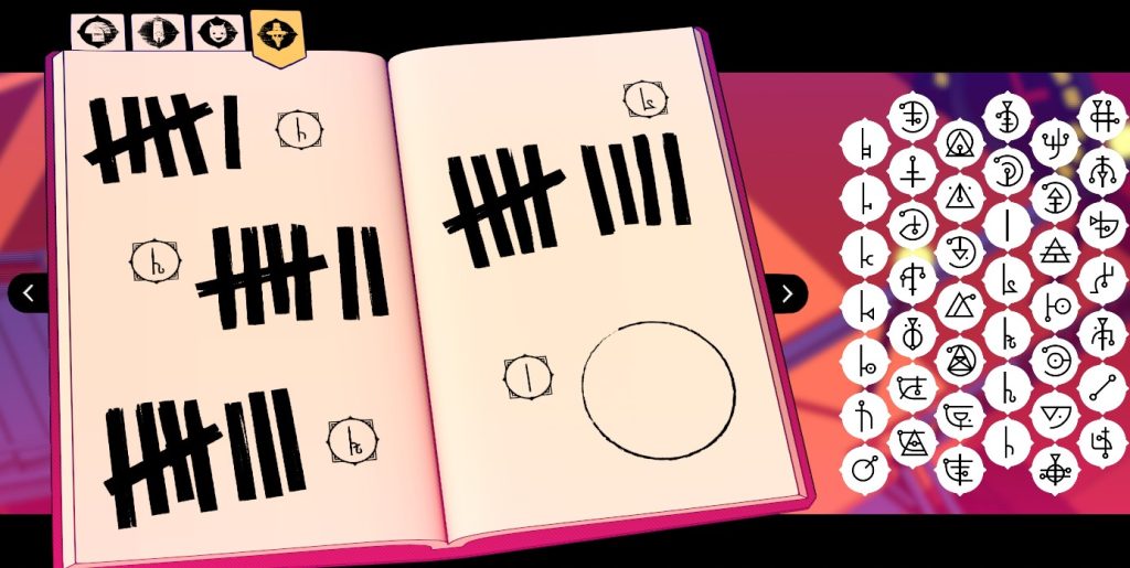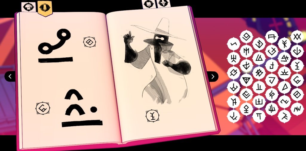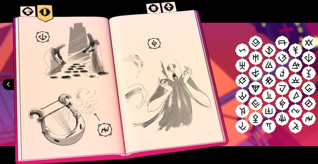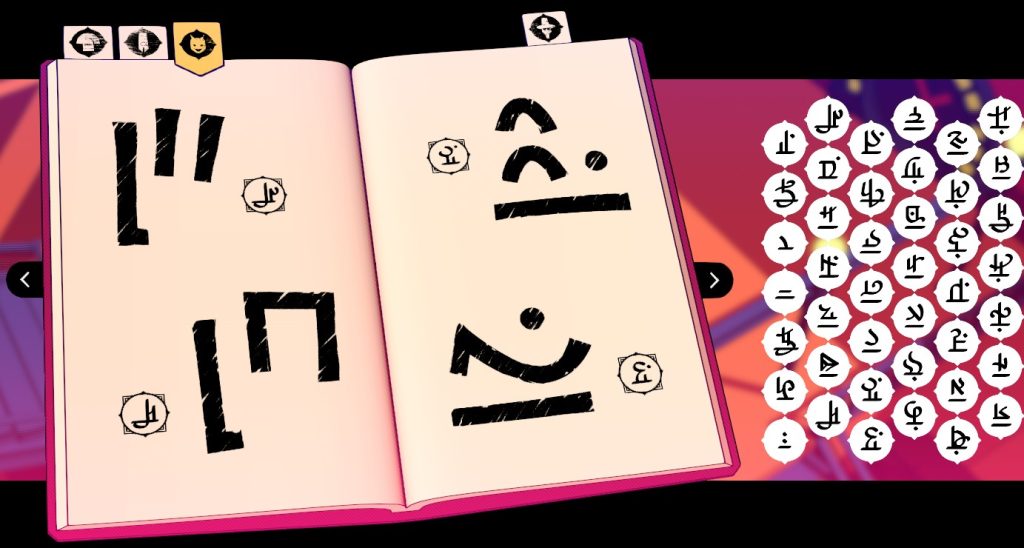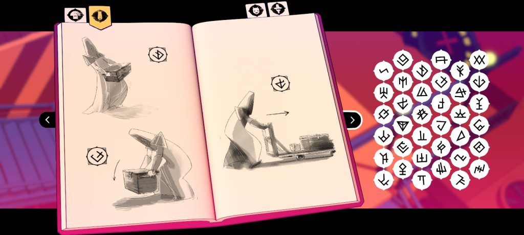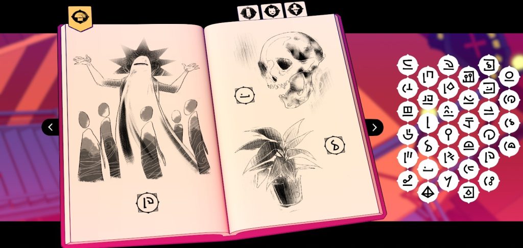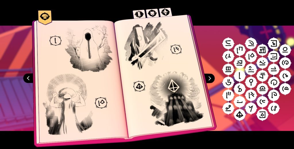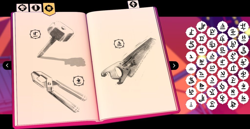 In questo caso i disegni vi serviranno a poco, in quanto per far comparire le pagine del taccuino dovrete prima comprendere la lingua degli Anacoreti attraverso la risoluzione di alcuni puzzle. Vi lasciamo qui la guida completa così che possiate tradurre rapidamente anche quest’ultimo idioma.