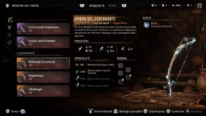 Questo è uno dei migliori archi da caccia disponibili e per ottenerlo dovremo abbattere i campi ribelli e portare a termine la richiesta di Erend “La Prima Forgia”. - Ombra del cercamorte