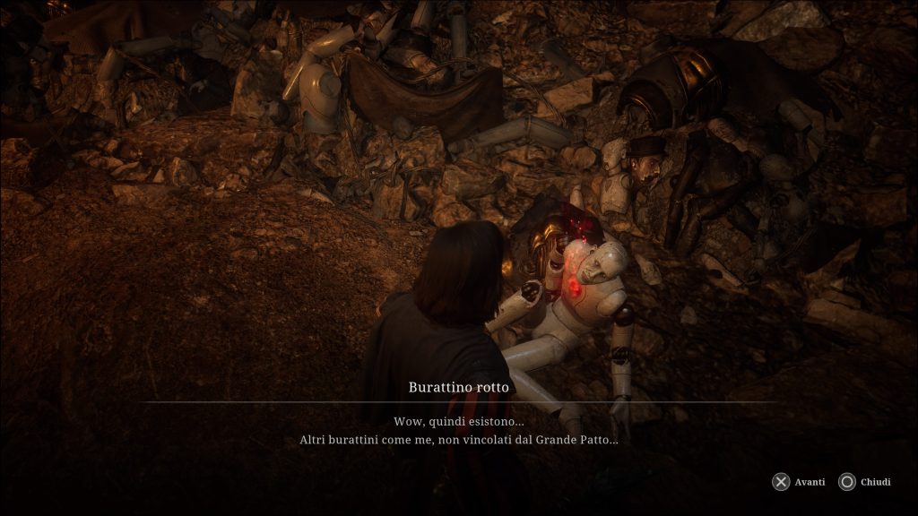 Proseguendo nell’avventura, raggiungerete lo Stargazer Palude Desolata. Ai suoi piedi vi aspetta un NPC, il Burattino rotto. Questa creatura pacifica può farvi procurare un paio di Quarzi, materiale preziosissimo e altrettanto raro in Lies of P, quindi completare la sua quest conviene.
