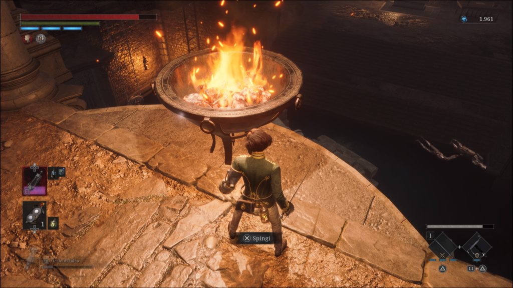 Subito dopo lo Stargazer “Cappella della Cattedrale di San Frangelico” (quello con Giangio per intenderci) dovrete affrontare una via sospesa su delle assi di legno (occhio a non cadere!). C’è un modo per liberarsi del liquame sottostante, dovrete infatti spingervi oltre questa parte per raggiungere il piano superiore (c’è un po’ di strada da fare). Sopra a delle assi di legno noterete un calderone infuocato, buttandolo di sotto vi libererete della fastidiosa sostanza. Infine, troverete una leva da tirare.