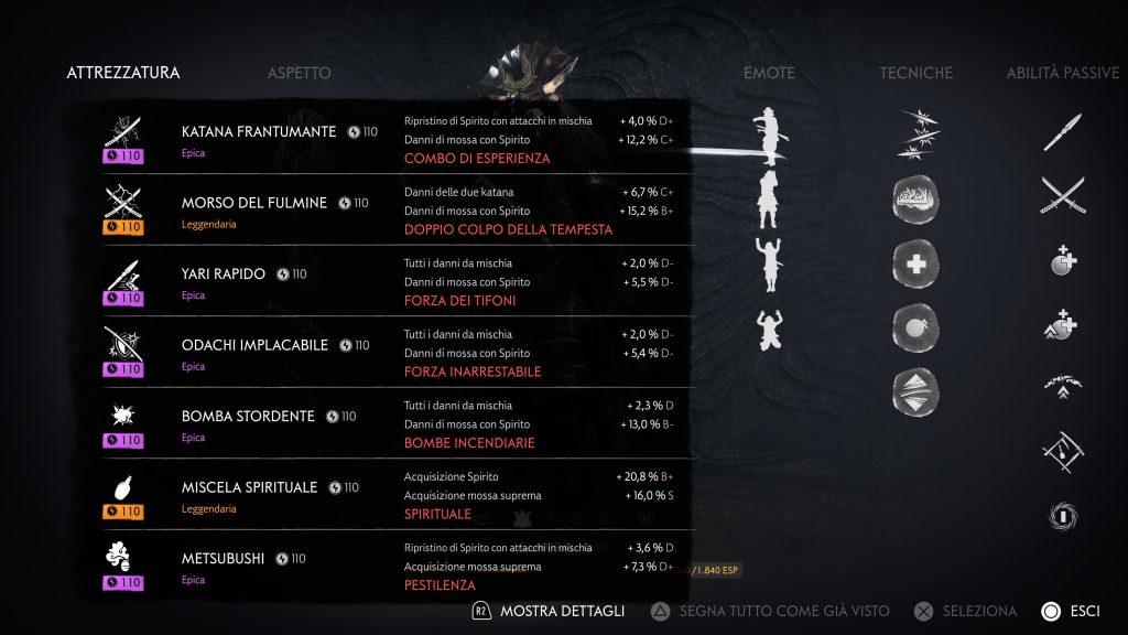 Di seguito quindi vi mostriamo la build completa del Samurai con i relativi bonus, inoltre vi ricordiamo che per ottimizzare al meglio i vostri colpi dovrete potenziare al massimo tutta l’attrezzature, in modo da aumentare le percentuali di bonus.