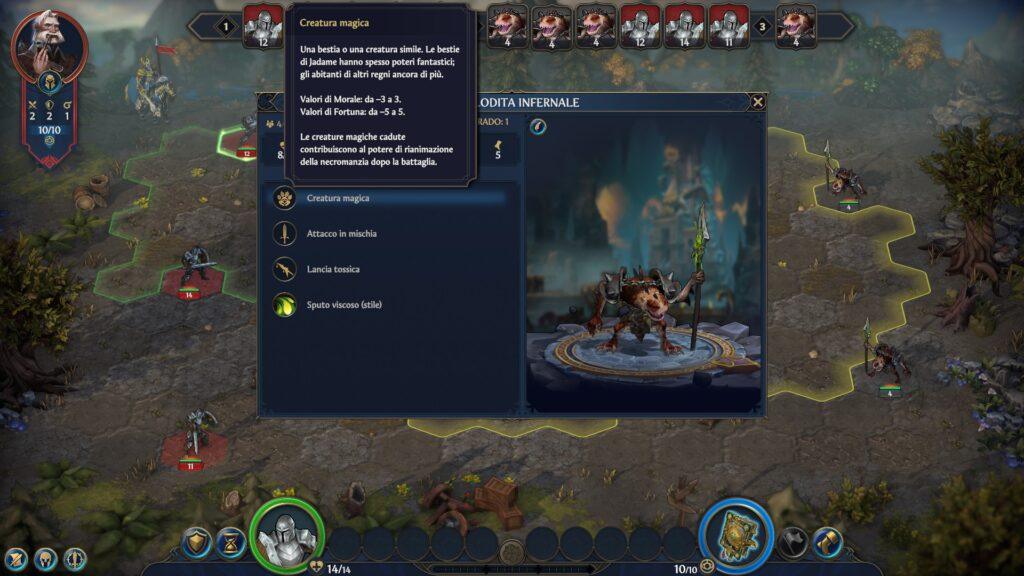 Questo sistema, apparentemente semplice ma ricchissimo di sfacettature e dettagli che si manifestano nelle centinaia di creature reclutabili e nelle decine di artefatti e incantesimi (di cui al lancio ci sarà già un numero maggiore di quanto mai visto negli altri esponenti della saga), costituisce lo scheletro delle partite a giocatore singolo come di quelle multigiocatore, possibili attraverso un sistema di lobby online, ma anche in locale giocando a turno su un singolo PC nella modalità Hot Seat.