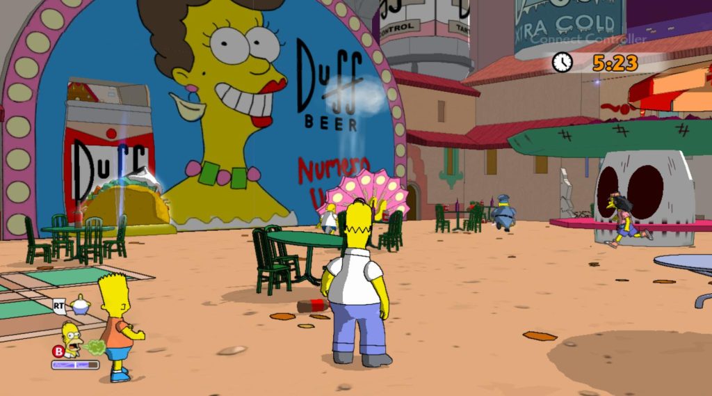 Nel 2007, finalmente, si realizza un sogno per i fan della famiglia gialla più famosa d’America, perché per la prima volta i Simpson si staccano da esperienze prettamente legate a un determinato genere, come nel caso dell’ottimo Hit & Run, e propone un avventuroso gioco 3D che omaggia alcuni iconici momenti dello show.