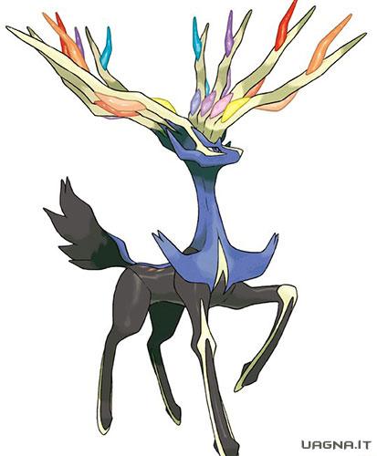 Per quanto riguarda i leggendari, ancora non si sanno i loro tipi, sappiamo però i loro nomi e giochi di appartenenza: il cervo Xerneas per Pokémon X (a sinistra) e il “drago” Yveltal per Pokémon Y (immagine).