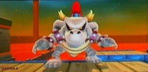Bowser è il re dei koopa che rapisce puntualmente Peach in ogni gioco e anche qui vi dovrete adoperare per salvarla. Lo trovi una volta in ogni mondo, ma solo nell’ottavo è veramente lui. Negli altri è solo un goomba travestito che ti prende in giro. Toglietelo di mezzo facendolo cadere nel magma. Dopo il ponte, quando sarete contro il vero Bowser non illudetevi, dovrete gettarvi in una folle corsa contro di lui ma sarete continuamente presi di mira dal suo pirolancio (palle di fuoco). Dopo la conclusione della storia principale tornerà più cattivo che mai come Skelebowser.