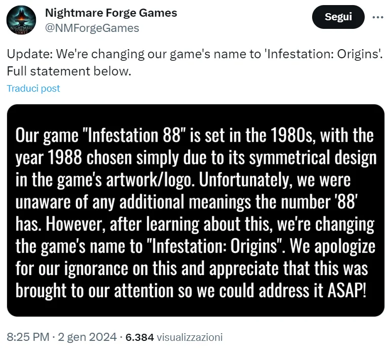 Il gioco di Nightmare Forge si identifica ora come Infestation: Origins. Il numero 88 infatti, per coloro che non lo sapessero, è un codice usato dai neonazisti per scrivere “HH”, ossia “Heil Hitler”. H è difatti l’ottava lettera dell’alfabeto. Se a questo aggiungiamo che il prodotto presenta come obiettivo quello di eliminare una versione mostruosa della mascotte Disney e sterminare alcuni ratti usando del gas, la modifica del nome non poteva che rendersi necessaria.