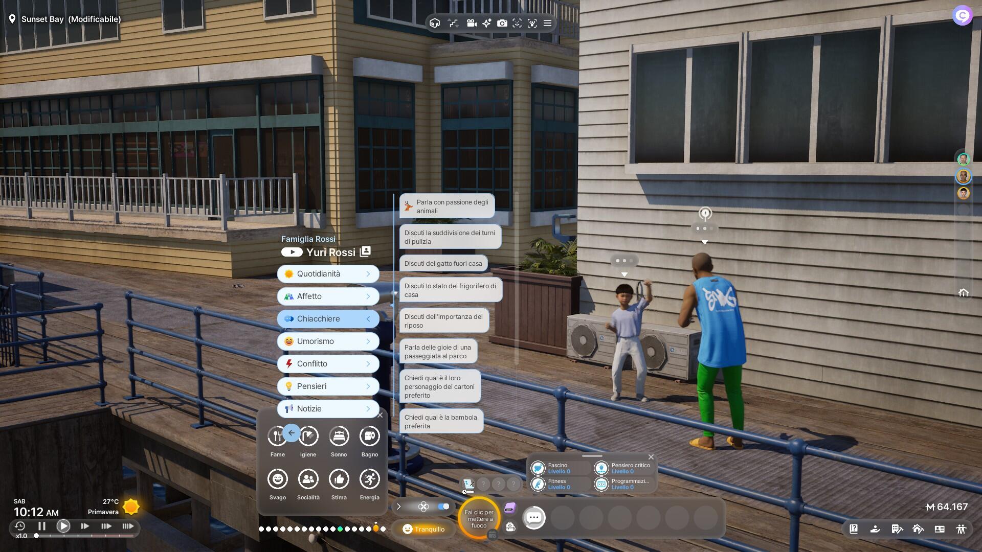 Le relazioni sociali sono un elemento centrale, come in The Sims, ma inZOI aggiunge un tocco più dinamico. Una delle novità più interessanti è la possibilità di controllare direttamente il personaggio usando i tasti WASD, rendendo l’interazione molto più fluida e immersiva. A questo si affianca un sistema di dialoghi sorprendentemente profondo: centinaia di opzioni, divise per tematiche e aggiornate regolarmente, permettono di affrontare le situazioni con una varietà mai vista prima.