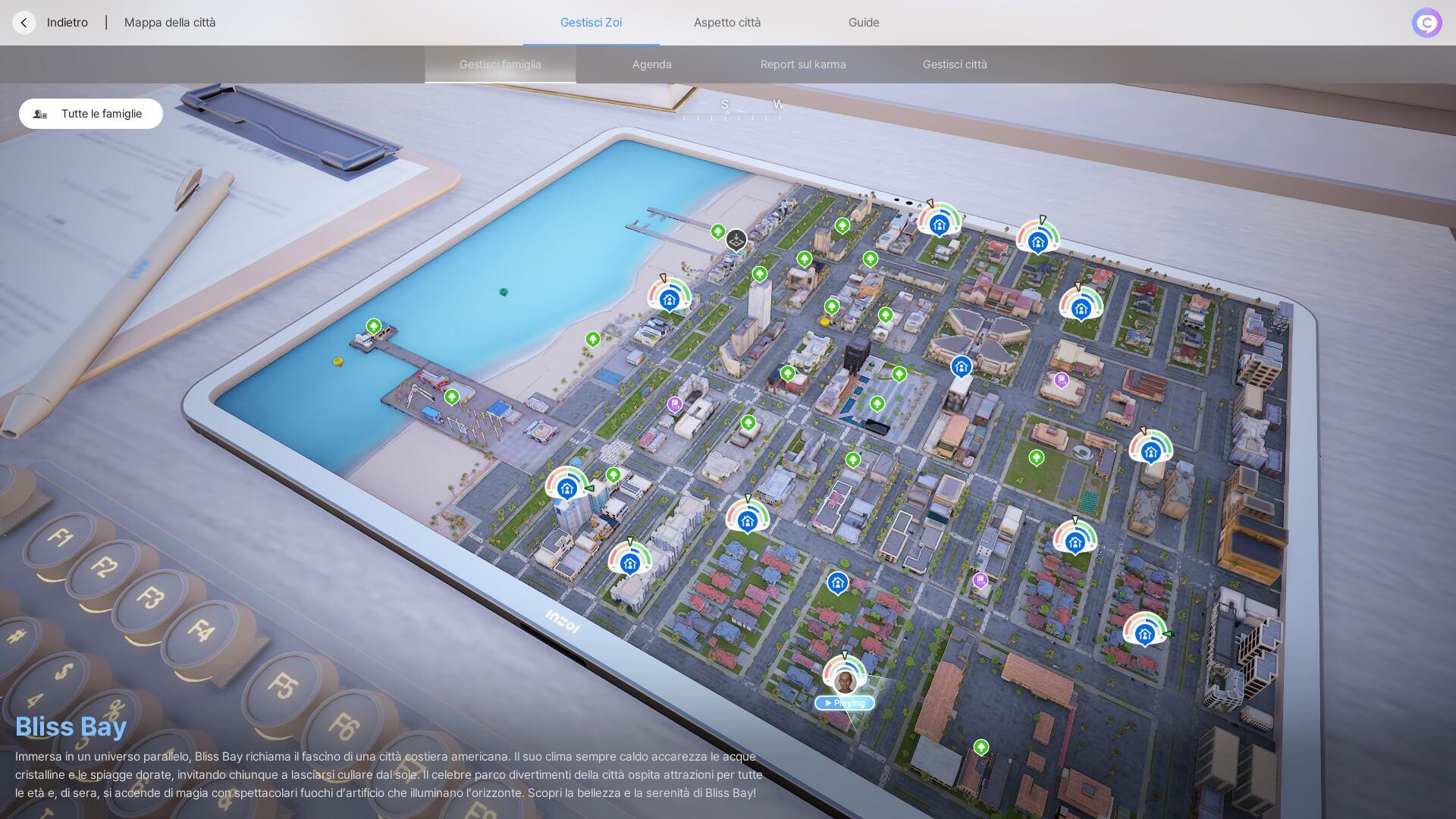 La visuale dall’alto rappresenta un’altra chicca utile e ben studiata: permette di avere una panoramica completa della città, segnalando lo stato emotivo dei propri Zoi, i lotti disponibili, i livelli di pulizia e le zone attive. Una sorta di centro di controllo che semplifica la gestione urbana senza intaccare il senso di immersione.