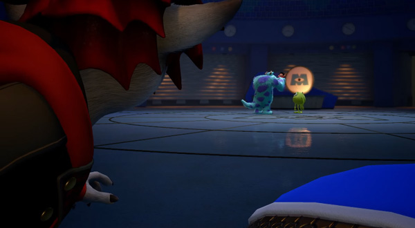 E finalmente assistiamo al debutto del nuovo mondo oggi annunciato ufficialmente dopo le indiscrezioni delle scorse settimane, quello ispirato al film Pixar Monsters & Co.. La scena si apre con Sora, Paperino e Pippo, tutti e tre con skin notevolmente differenti e più “mostruose” per meglio adattarsi al mondo su cui si trovano, mentre entrano nella Monsters Inc. dove fanno la conoscenza di Mike Wazowski, James “Sully” Sullivan e Boo, la piccola umana che come ben sappiamo riuscì nel film a penetrare nel mondo dei mostri. Il livello di dettaglio dei personaggi è molto elevato come del resto avevamo già apprezzato per Toy Story, e lo dimostrano elementi come il pelo di Sully che siamo sicuri scateneranno nuovi complimenti dalla Pixar a Nomura e il suo team.