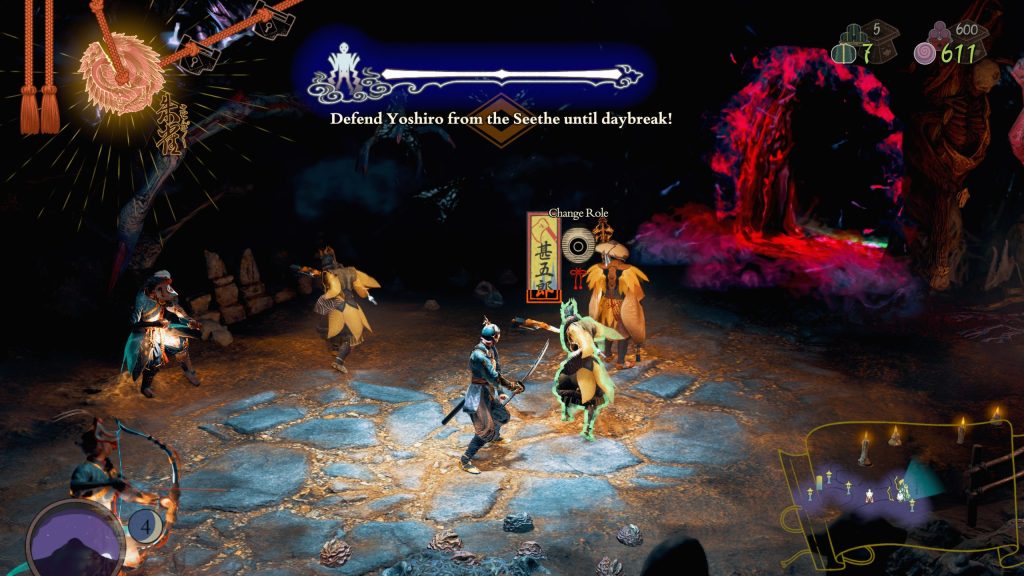 Questa meccanica risulta rilevante al fine di ottenere importanti benefit e risorse, ma anche per poter visitare la tenda di Yoshiro, che consente di personalizzare e migliorare l’inventario dello spadaccino. Grazie alla sacerdotessa si sarà in grado di impostare mosse speciali speciali per Soh, equipaggiare i numerosi talismani Mazo capaci di fornire bonus passivi utili per il campo di battaglia e aumentare il livello delle varie classi per gli abitanti.